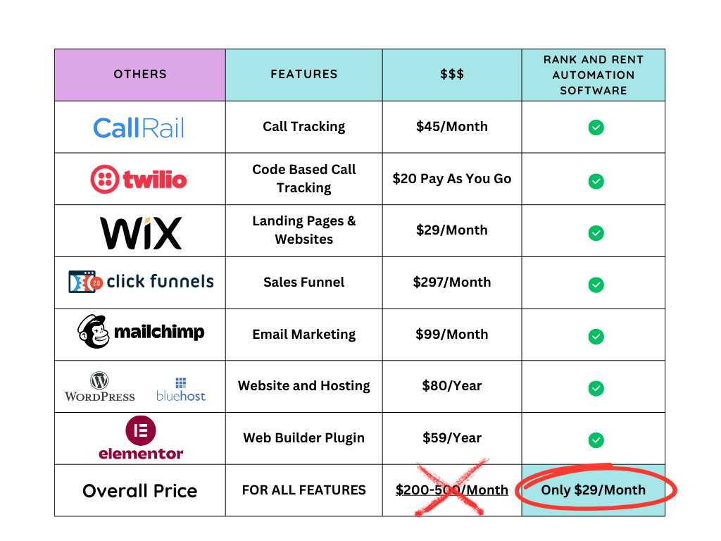 Rank and Rent Automation Software is cheaper than paying multiple softwares separately.